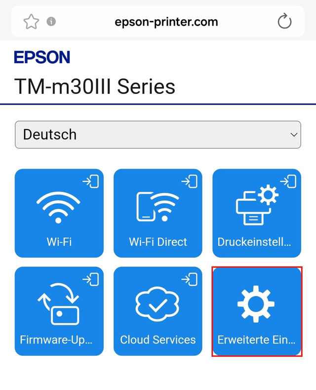 - Die Drucker „Web Config“ über den gedruckten QR-Code öffnen. Alternativ die IP-Adresse des Druckers über die Adresszeile des Browsers öffnen.